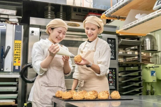 生菓子・焼菓子・ショコラに加え、ガレットやキッシュなどのフード、パフェ・ジェラート・かき氷といったカフェメニューの製造にも携われます。