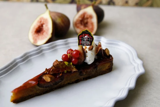 2種のダークチョコレートとガナッシュ、ジェノワーズショコラを重ねたチョコレートケーキ。ザクザク食感のクランチとほろ苦くて甘いオレンジピールがアクセント