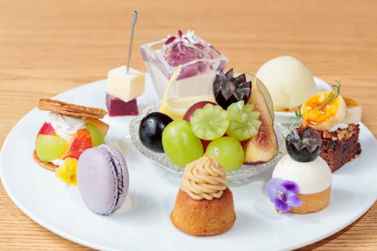 店内で提供するのは、看板メニューである季節のパフェをはじめ、アフタヌーンティー、フルーツサンド、アシェットデセール、焼菓子、ジェラート、ジャムなど、旬の果実をふんだんに使った品々。ケーキの物販やギフト提案など、テイクアウトにも力を入れており、イートイン・テイクアウトの両方で多彩なメニューをご用意しています。