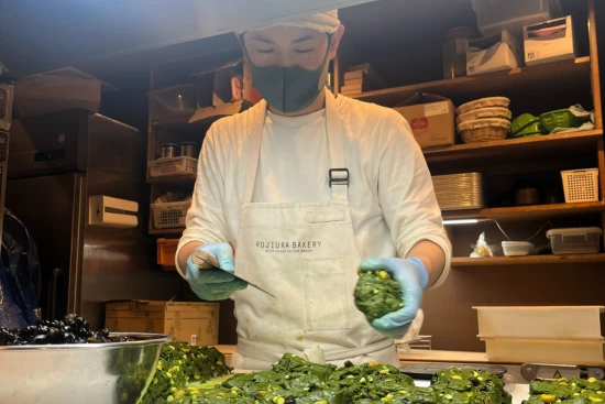 一本裏通りに入った場所で、日々約70種類のパンを焼き上げるこの店は、まるで「路地裏の隠れ家」のような存在。地域に長く愛されるパン屋でありたいという想いから、パンは1日1回で作り切らず、午後4〜5時頃まで何度かに分けて焼き続けています。できる限り焼き立てを提供すること、それがロヂウラベーカリーのこだわりです。