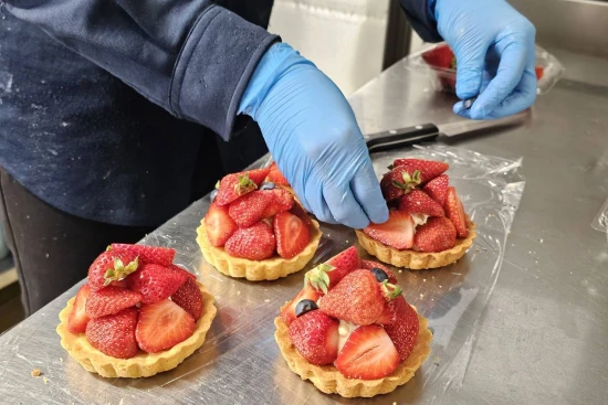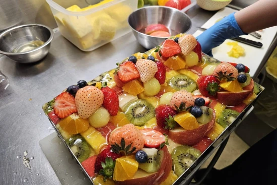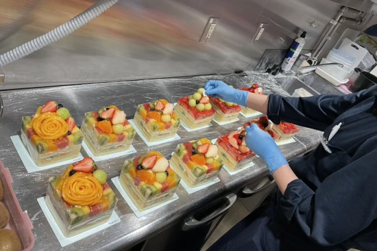 タルト生地やスポンジは自社セントラルキッチンから届くため、店舗でお任せするのは、フルーツカットや盛り付け、ホイップ・カスタードを使った仕上げ、簡単なゼリーづくりなどが中心です。