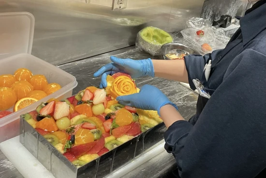 「このフルーツならどう切ると一番きれいか」「どんな並べ方なら魅力が伝わるか」を考えながら、一つひとつ仕上げていきます。