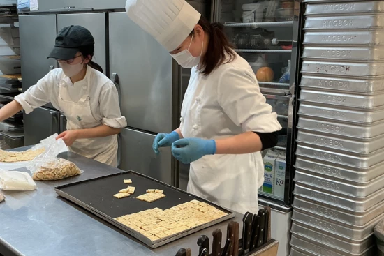 うちは“楽をして作る”店ではありません。生地もパーツも、できる限り店で仕込み、手間を惜しまず積み上げていきます。だから大変な部分はあります。でも、その分ここで数年働けば、材料の扱い方から基礎まで、独立するときに必要な土台がしっかり身につきます。さらに、仕事が早く終わった日は厨房を使って練習することもできます。友達へプレゼントするお菓子作りに使うのも、自分の技術を磨くのも自由。大事なのは「作ることが好き」であることと、チームで気持ちよく働けること。昔のような厳しい縦社会はありません。良いお菓子を作り、ちゃんと休み、長く続けられる環境にしていきたい。ここで一緒に、誇れる仕事を積み重ねましょう。