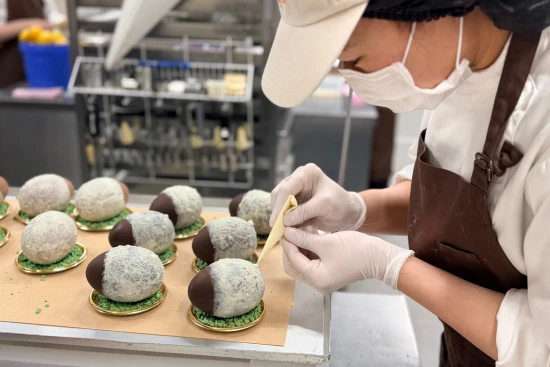 このアトリエで活躍しているのは、華やかな自己表現よりも、目の前の仕事を丁寧に積み重ねることができる方です。現場は20代〜30代のスタッフが中心で、仕事中はそれぞれが担当業務に集中しながら、必要なときにはしっかり連携を取るスタイル。おしゃべりが多い職場というより、黙々と手を動かしながら品質を守っていく空気感があり、「接客よりも製造に向き合いたい」「落ち着いた環境でお菓子づくりを続けたい」という方がなじみやすい環境です。また、入社後すぐに何でも任されるというより、まずは主力商品の製造を通してブランドの基準を身につけ、段階的にできることを増やしていく流れ。だからこそ、経験がある方の中でも、我流を押し通すのではなく、ブランドの考え方を素直に吸収しながら成長していける方が活躍しています。コツコツ取り組む力と、周囲への気配り。その両方を持った方に向いている職場です。