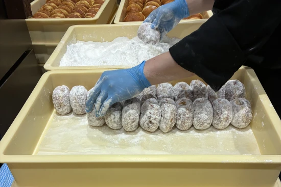 正社員メンバーは20~30代が中心で、年齢の近いメンバーが多く、上下関係が強すぎないフラットな雰囲気の中で仕事を進めています。社員は洋菓子業界での経験者が中心で、ホテルや結婚式場、パティスリーなど、それぞれ異なる現場で培った経験を持つ方が活躍中。焼菓子を中心としたOEM製造に加え、併設のシュークリーム専門店の商品づくりにも関わるため、日々さまざまなお菓子に触れながら働ける環境です。現場ではただ黙々と作業するだけでなく、周囲と声を掛け合いながら進める場面も多く、チームで協力しながらものづくりをしていくスタイル。成長中の会社だからこそ、一人ひとりの役割も広く、現場に近い距離で会社づくりに関われるのも魅力です。
