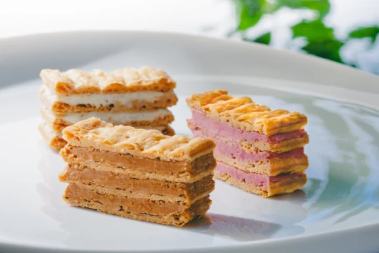パティスリー・ホテル・食品工場など多彩なバックグラウンドを持つメンバーが活躍しています。製菓学校卒の若手から業界歴数十年のベテランまで、幅広い世代が同じ目標に向かって丁寧に仕事をこなしています。工場スタッフの平均年齢は30〜40代。「数をこなしながらも、一つひとつのお菓子に誠実であること」を大切にしており、集中して黙々と取り組むプロフェッショナルな雰囲気が漂う現場です。