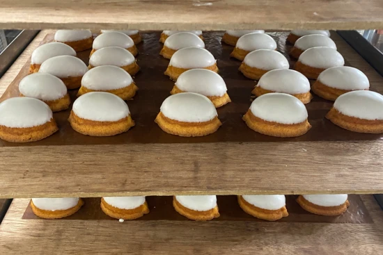 製造する商品は生菓子と焼き菓子が中心。定番商品のブラッシュアップを重ね、「エクラならでは」の顔となる商品を育てることに注力しています。地元のお客様が毎年予約してくれる定番ケーキ、観光客の目を引く美しいアントルメ、そして島の日常に溶け込む焼き菓子の数々。それぞれの商品に、シェフのフィロソフィーが宿っています。