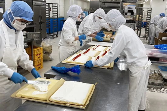 堂島ロールをはじめとした生ケーキやプティガトー、全国で販売する焼菓子を、パティスリーと同じような“手作り”にこだわったスタイルで製造しています。