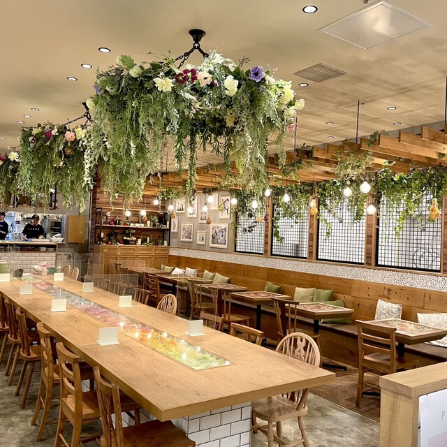「味わう」だけでなく「撮影して共有する」体験ができる、最先端のフォトジェニックスイーツです。- パフェ&ジェラート LARGO ルクアイーレ店: 緑と花々に囲まれたお花畑のような空間。どこを切り取っても絵になります。