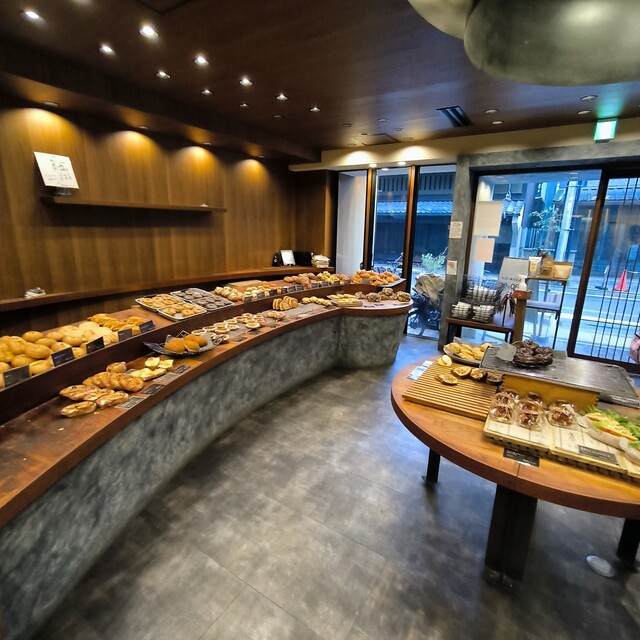 烏丸御池のオフィス街に佇む、北欧テイストのおしゃれなベーカリー。国産小麦にこだわったパンは、噛みしめるほどに味わい深いハード系が中心です。併設のカフェスペースで、選んだパンをリベイクしていただくこともできます。