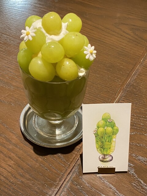 国産シャインマスカットが山のように盛り付けられた秋の看板メニュー「ますかっとやま」。その美しさと贅沢な味わいは、忘れられない思い出になるはずです。