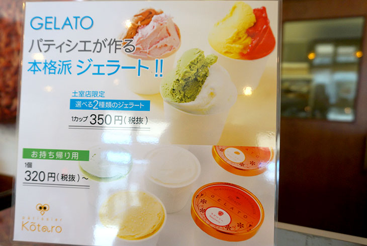 コウタロウさん: 「でも、最終目標は『パティシエコウタロウ』に来てもらうこと。アイスクリームショップならまだしも、パティスリーがジェラートのショーケースを設置して対面販売するというスタイルは珍しいんですよ。そのアイスクリームショップも、高槻市では31(サーティーワン)が1店舗ある程度。市内だからと言って気軽に行けるわけでもないですし、近くに住んでいるお客様が『遠くに行かなくても美味しいジェラートが食べられる』と思っていただければ嬉しいですね。イートインスペースも18席用意しているので、寛げる場として活用してほしい」