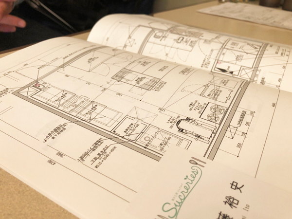 ▲物件が決まればデザイン事務所と内装打ち合わせ。スムーズな動線確保のため、工房を広めにとっているそう。