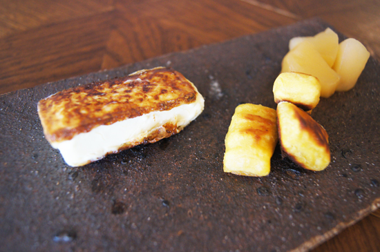 ▲コース1品目はサレ(塩気のあるデザート)。クリームチーズのポワレ、安納芋のニョッキなど